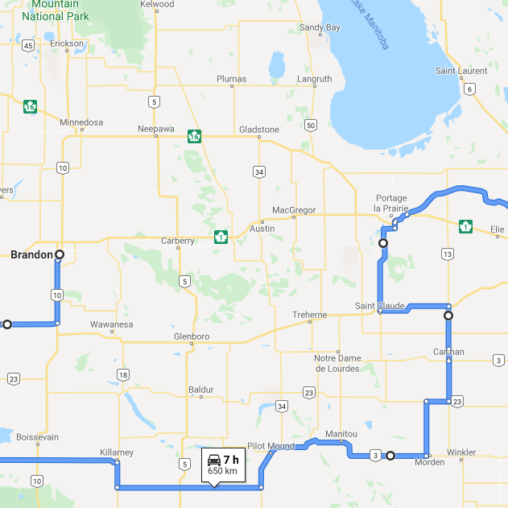 A question came in asking for a route to get from Brandon Manitoba to Teulon Manitoba for a couple of riders. The riders had a route already planned for day 1 that would see them riding from Teulon to Brandon via The Narrows and they wanted an alternate route home. They needed it quickly too.Continue readingThe Long Road Home