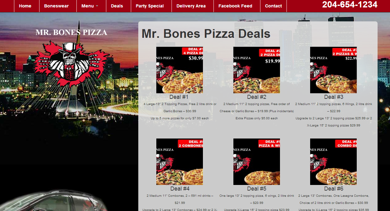 When Harold contacted me about building a website to promote the return of Mr. Bones I was excited. Bringing great pizza back to Winnipeg and I get to help promote it with a new website? Awesome!